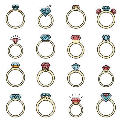 Diamond Ring Icons Set Vector Flat 8601013 Vector Art At Vecteezy